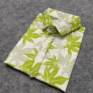 Men Regular Fit Printed Light Green Spread Collar Casual Shirt