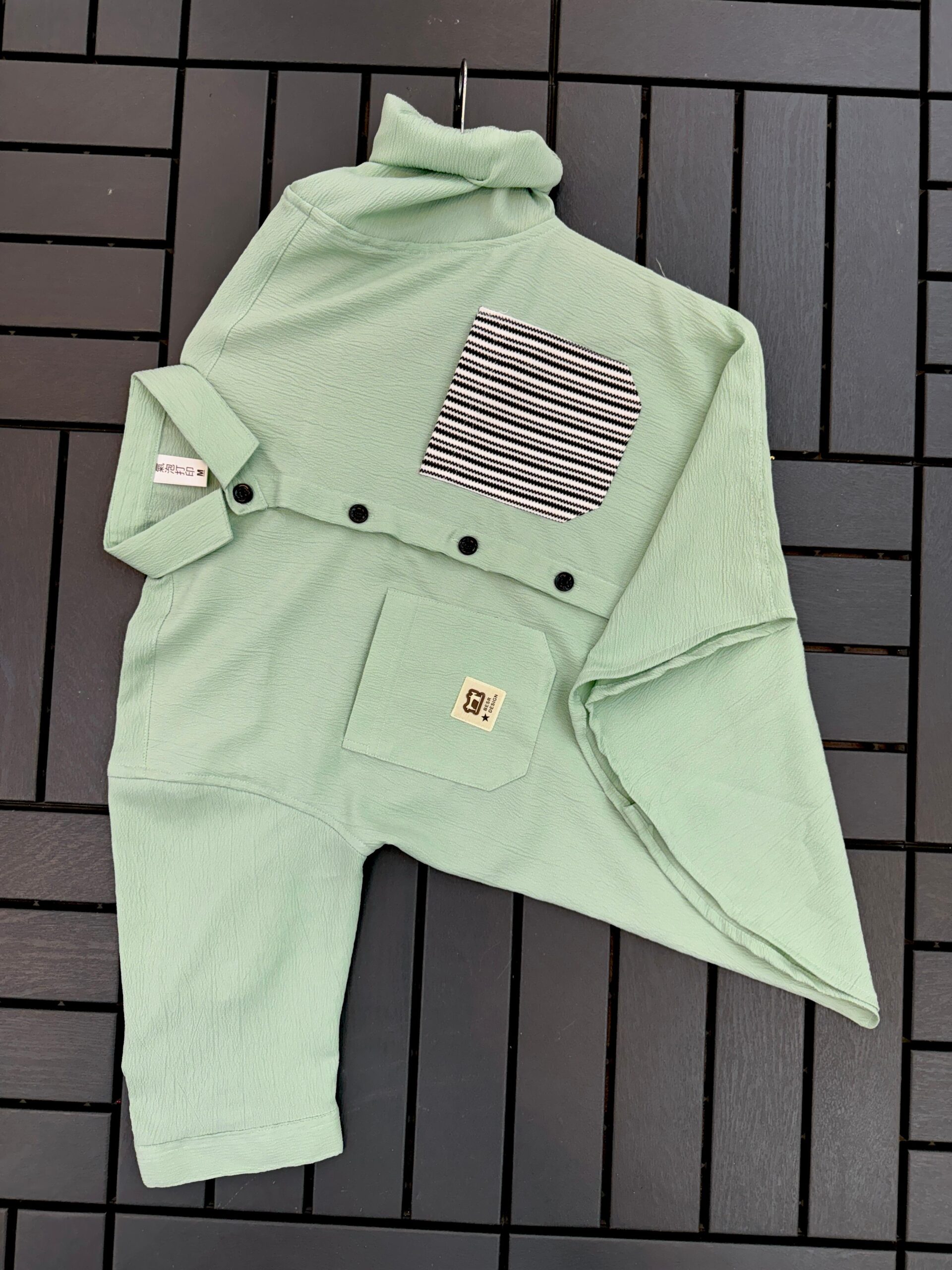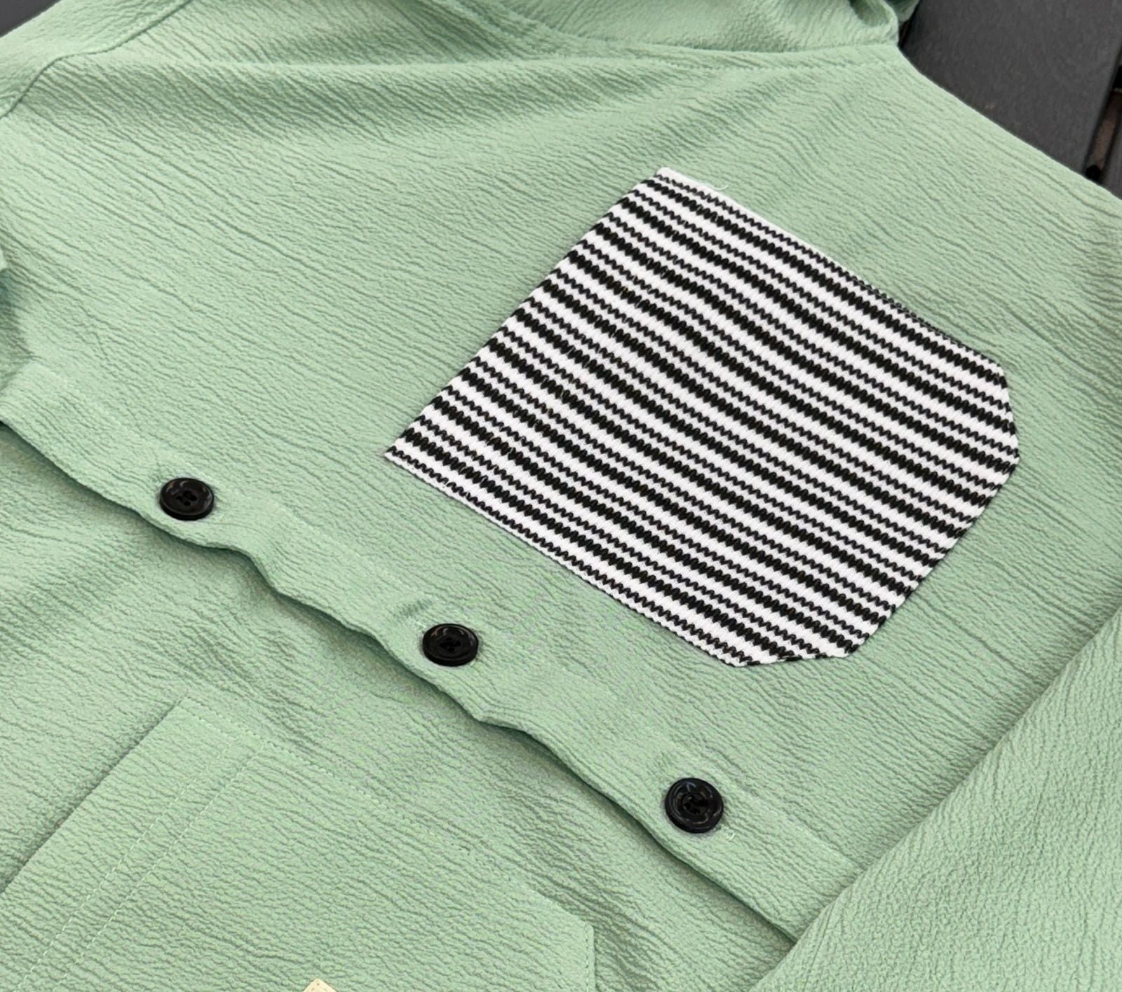 IMPORTED CRUSH FABRIC DOWNSHOULDER 3/4 SLEEV PARROT SHIRT