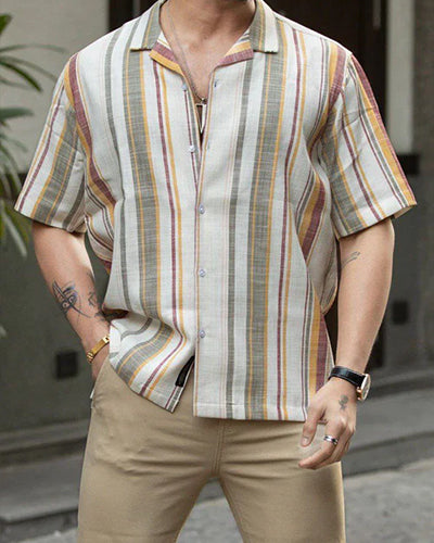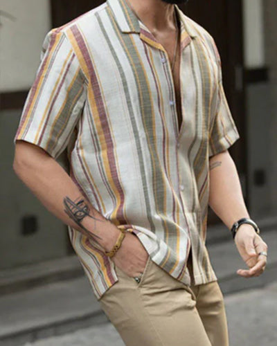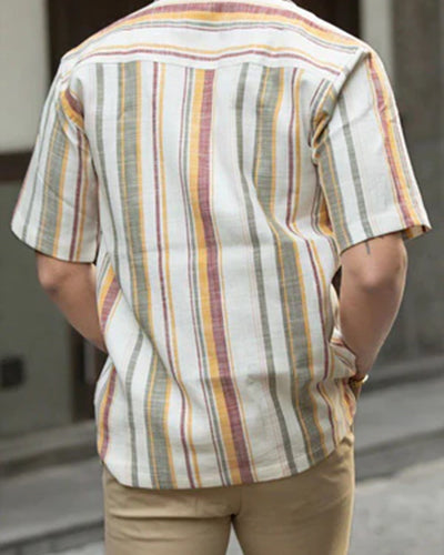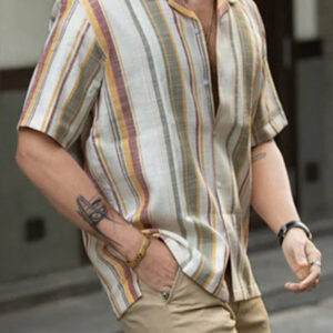 Men’s Casual Button Down Shirts Half Sleeve Cotton Fashion Striped Shirt