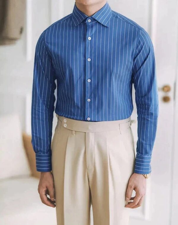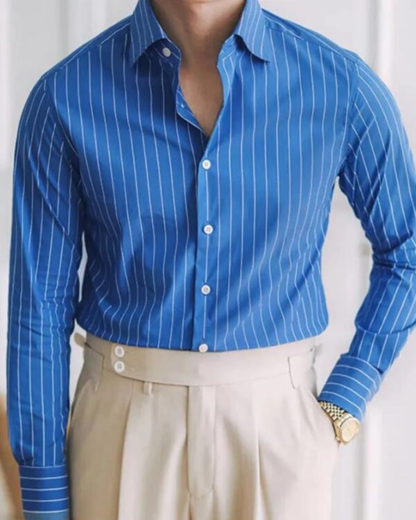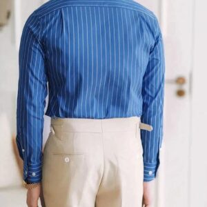 Men’s Casual Full Sleeve Sky Blue Cotton Roman Strip Shirt