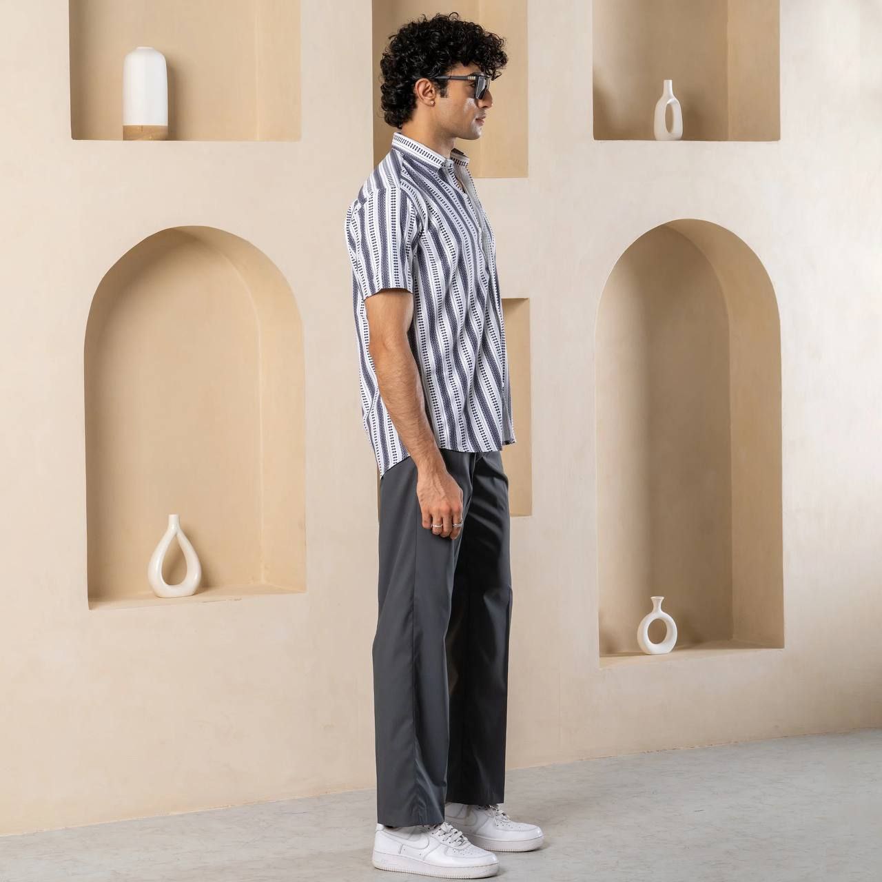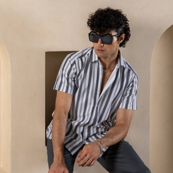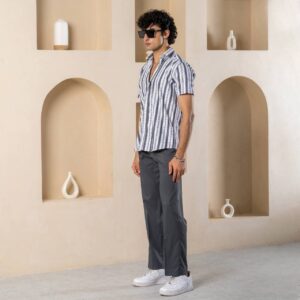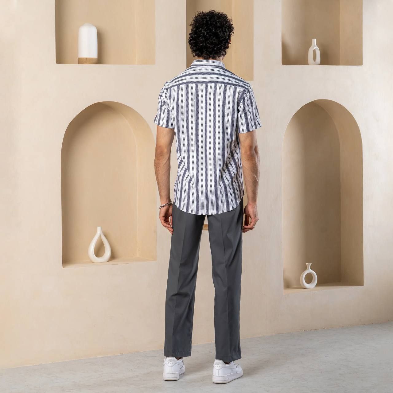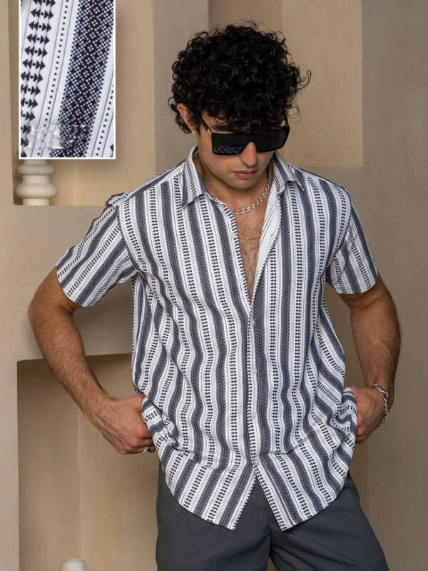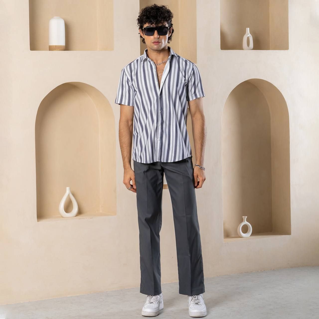 Men’s Casual White Half Sleeve Cotton Fashion Striped Shirt