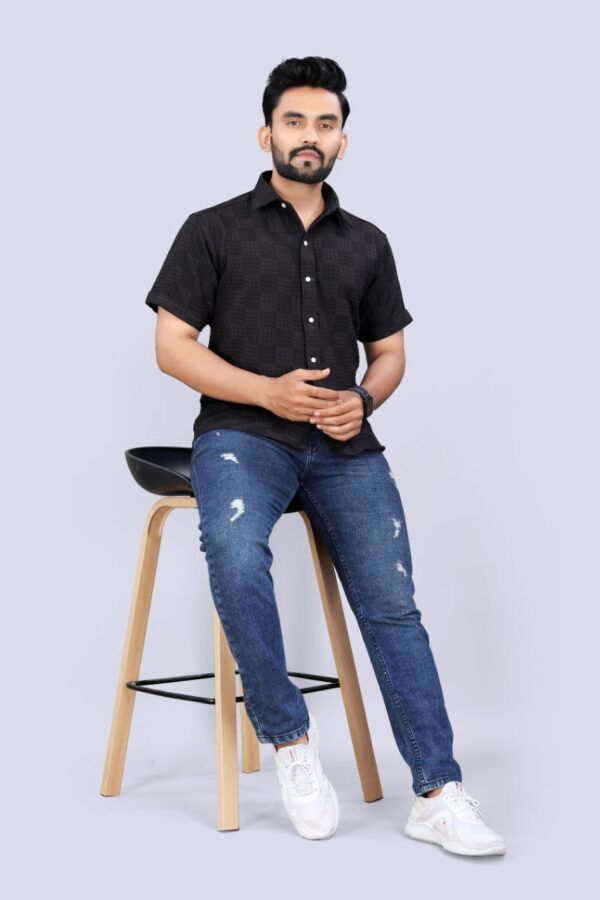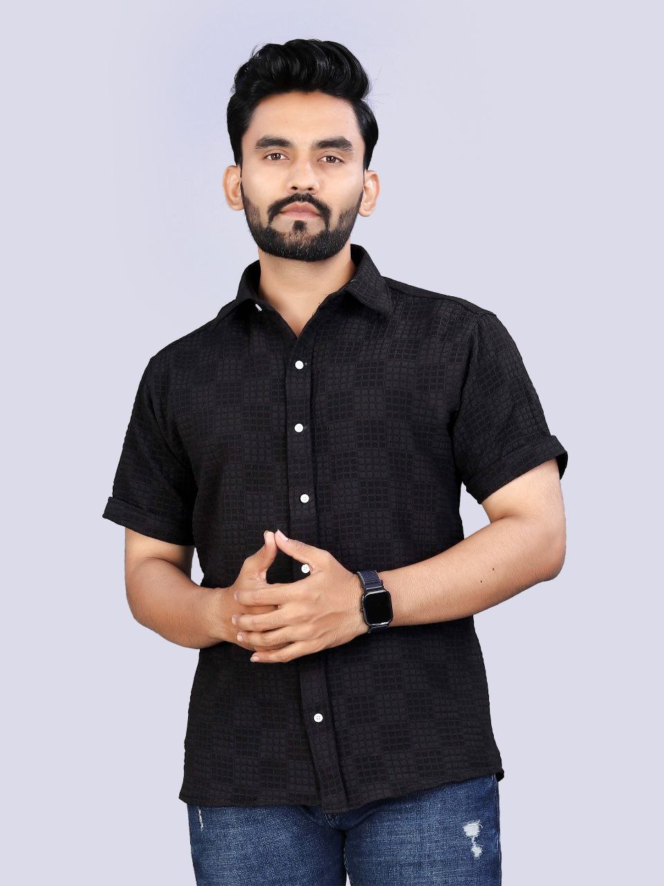 MEN’S EXCLUSIVE HEVY COTTON SQUARE LUDO CHECKS BLACK SHIRT